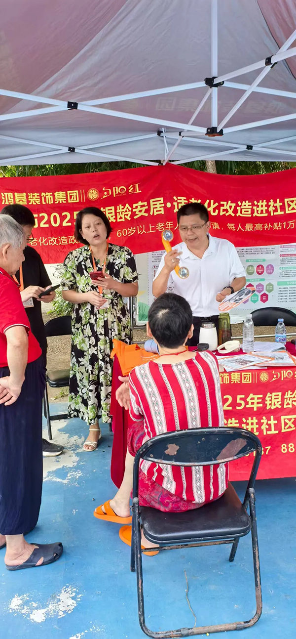 此次活動通過面對面、零距離的溝通方式,讓更多老年人了解適老化改造的重要性與政策福利,更切實解決了老年群體及其家庭的實際困惑,將關(guān)愛落到實處。活動現(xiàn)場,鴻基裝飾集團董事長胡克偉表示:“后續(xù)集團還將持續(xù)關(guān)注社區(qū)老年群體需求,憑借專業(yè)的設(shè)計與施工能力,為符合條件的家庭提供更優(yōu)質(zhì)的適老化改造服務,讓“養(yǎng)老”變“享老”,為老年居民打造安全、便捷的居家環(huán)境”。